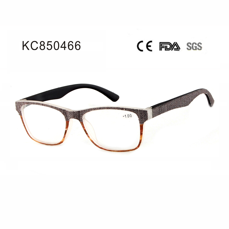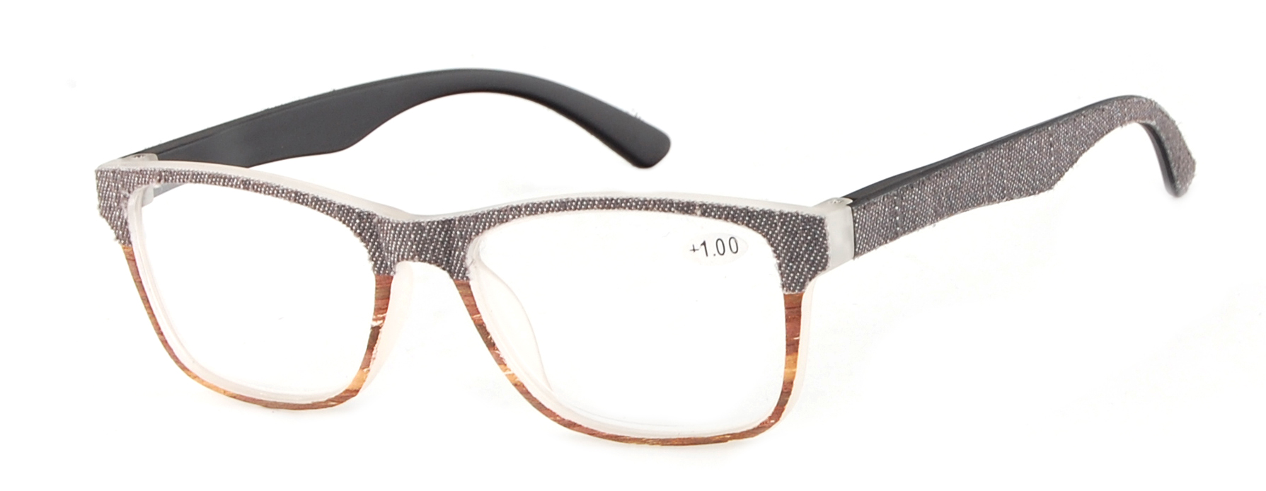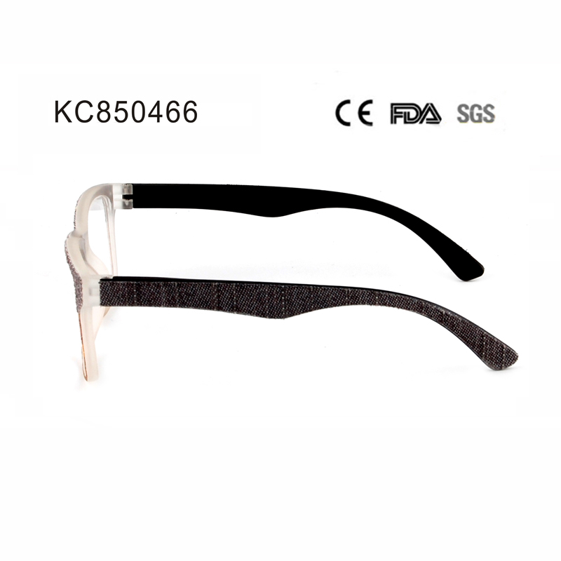 Modern full-frame style, internal spring hinge and use matte clear with fabric pattern artwork.