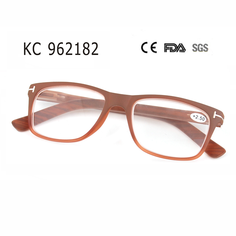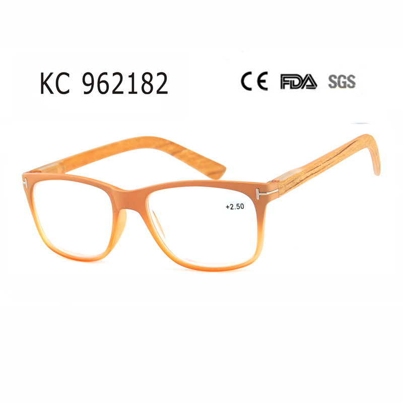 Modern full-frame style, internal spring hinge and matte crystal orange with grad.bk spary outside/silver studs and temple matte clear with wood stick .