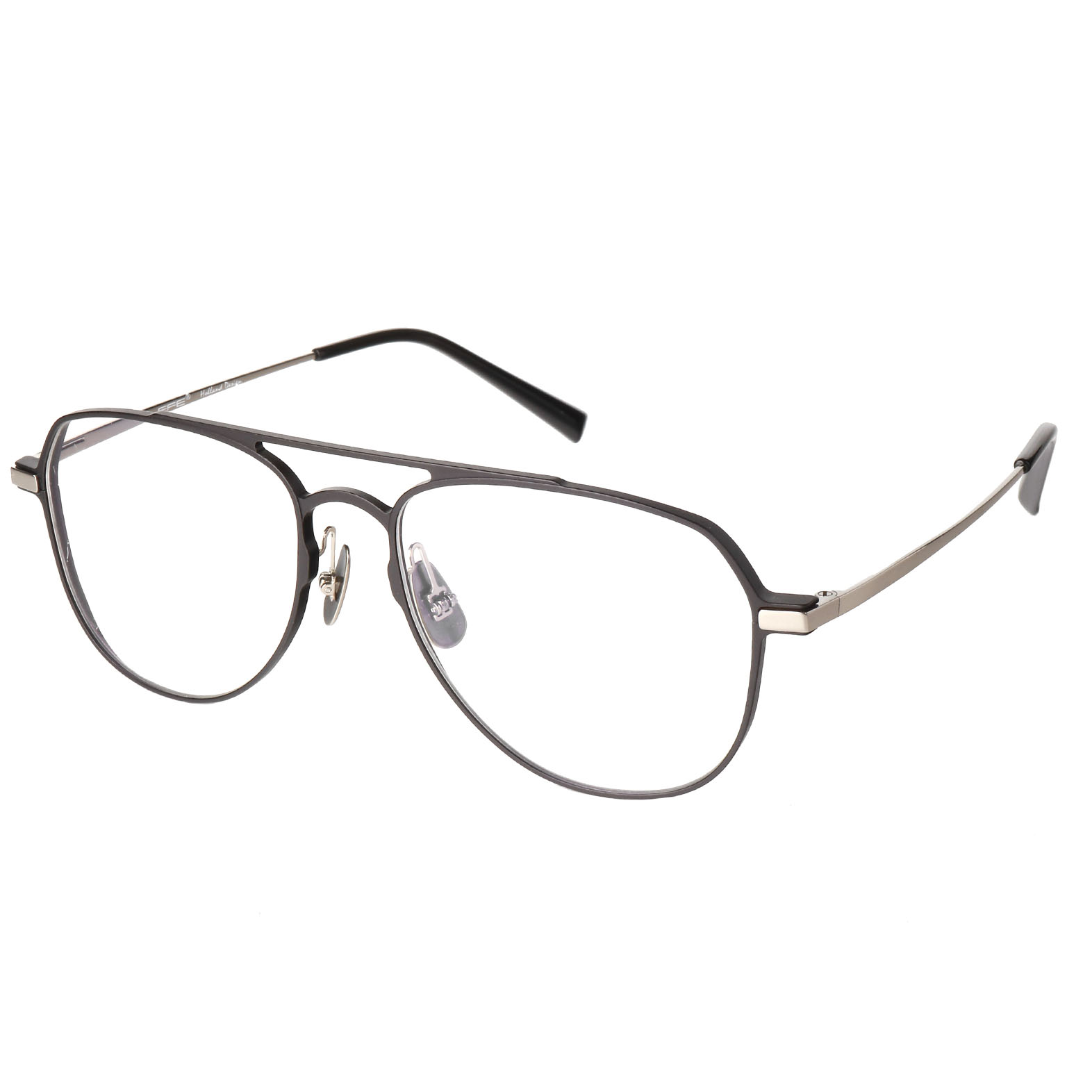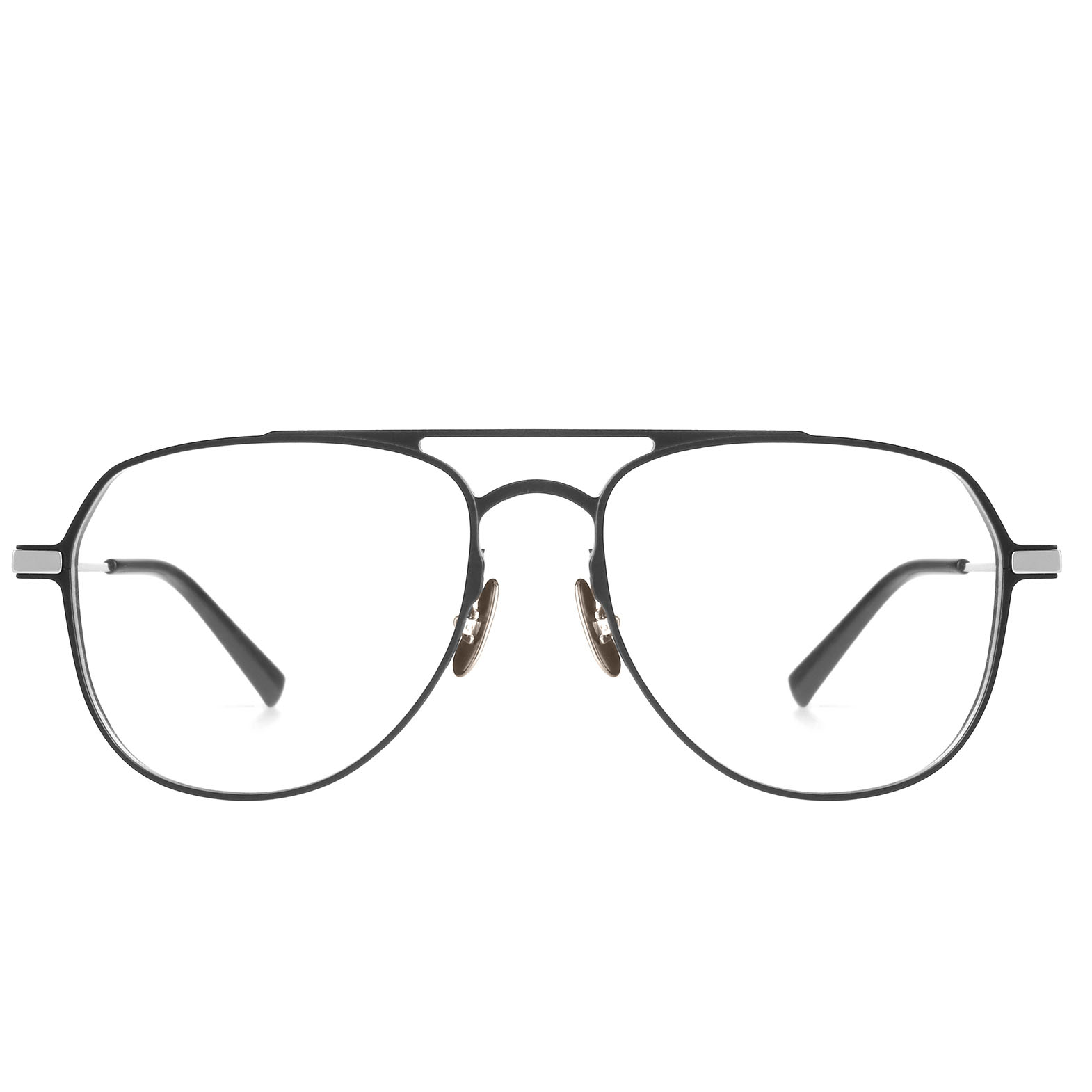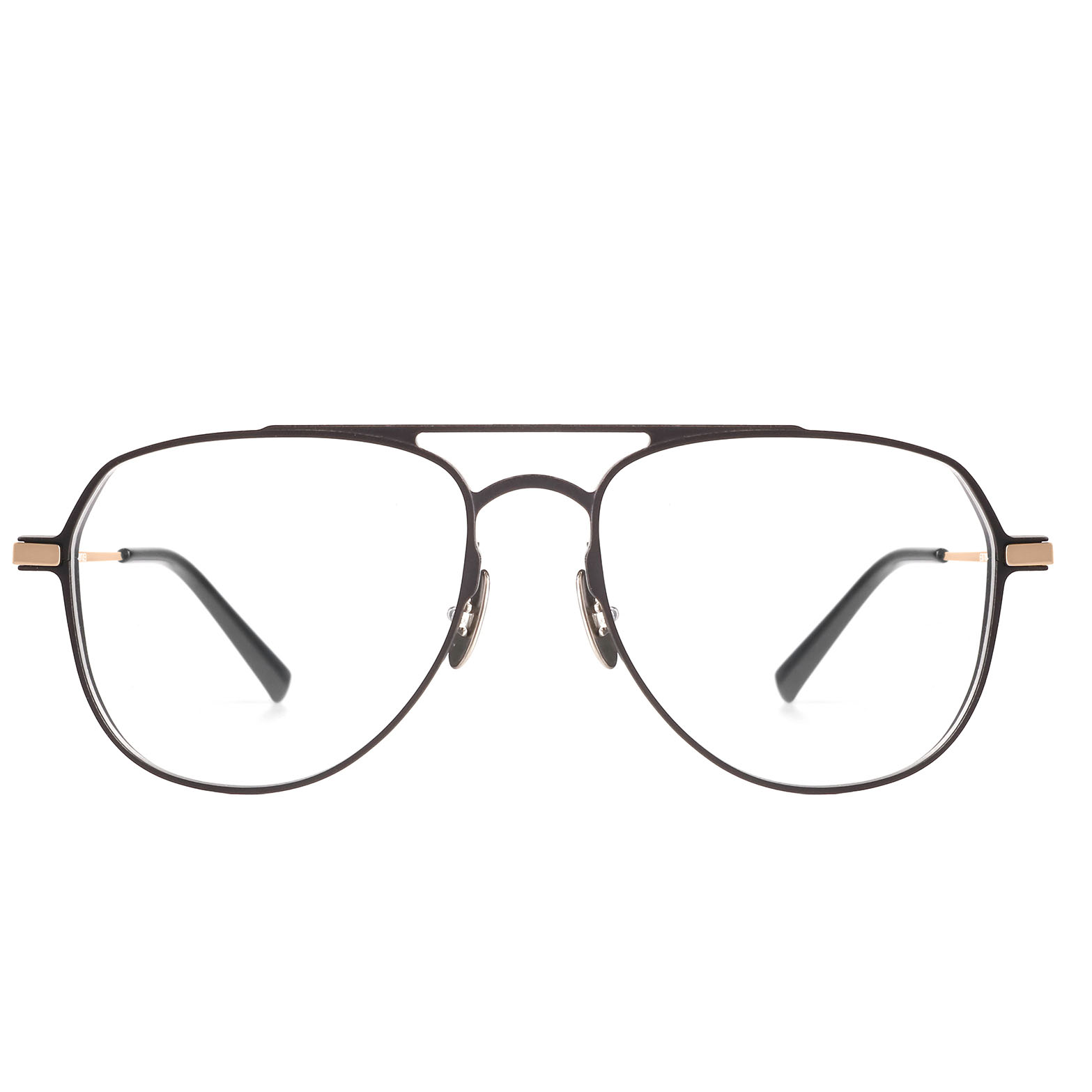 Double color plating process for the frames and temples, titanium nose pad arms.