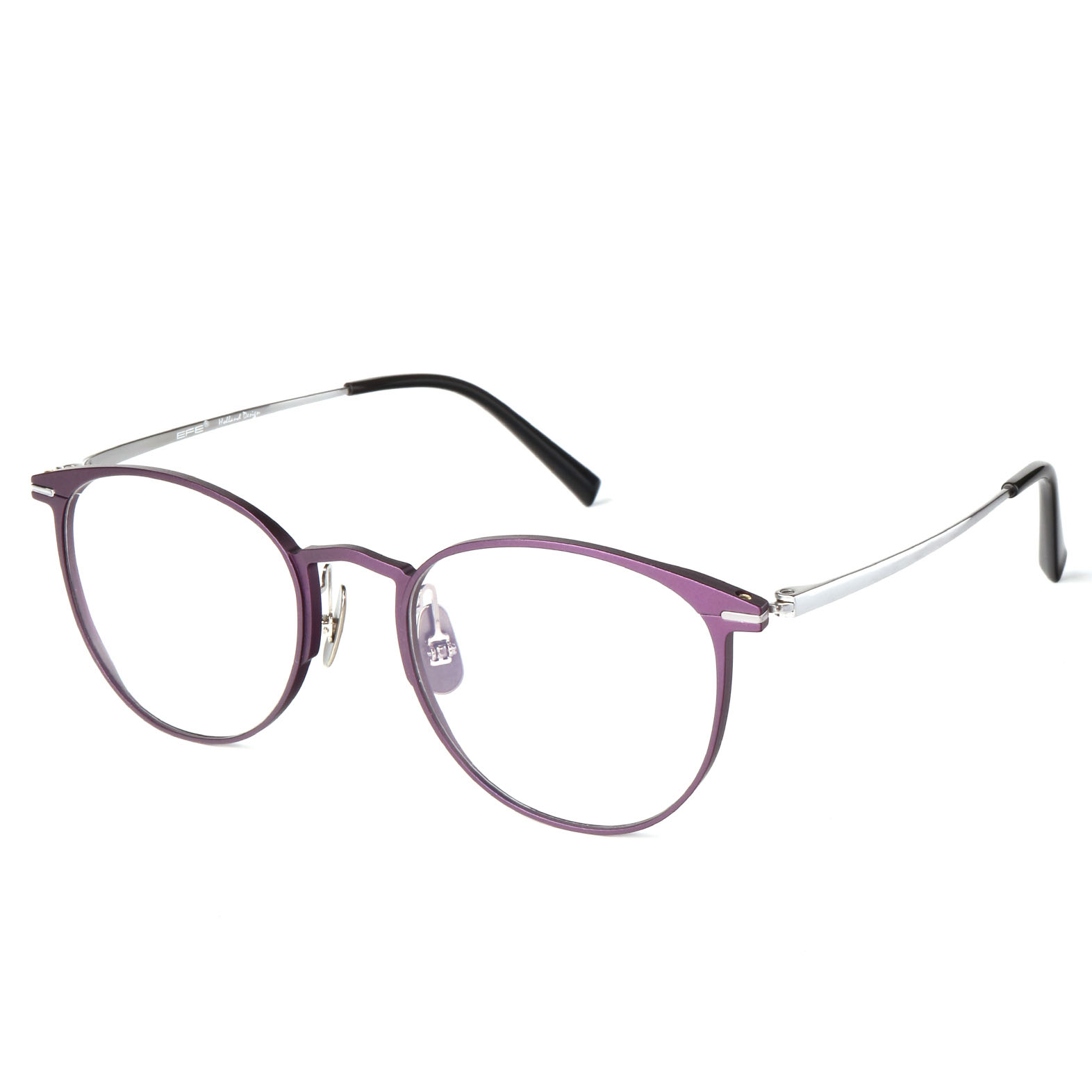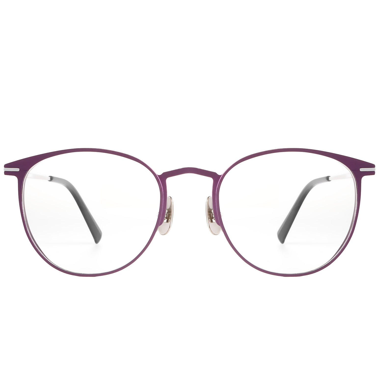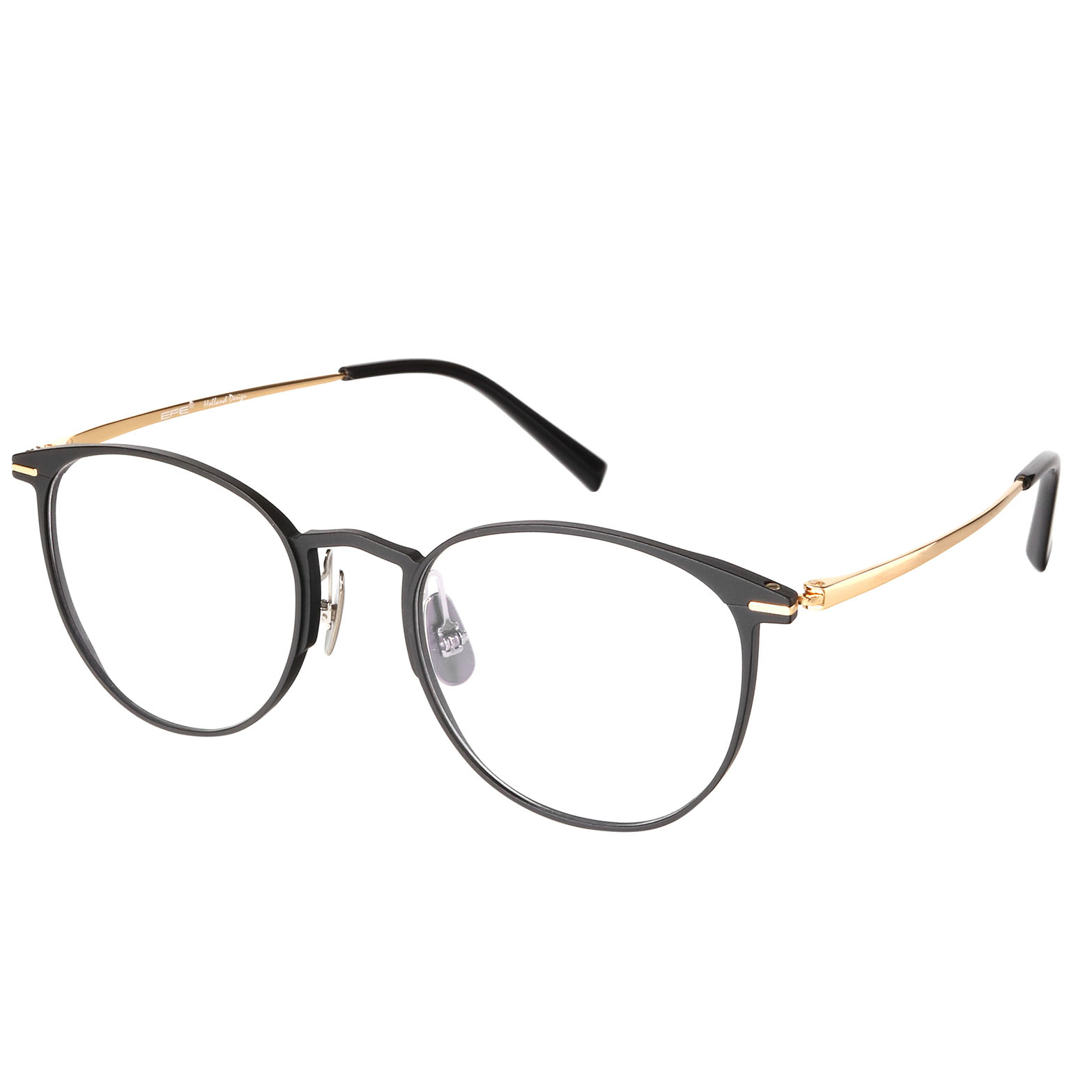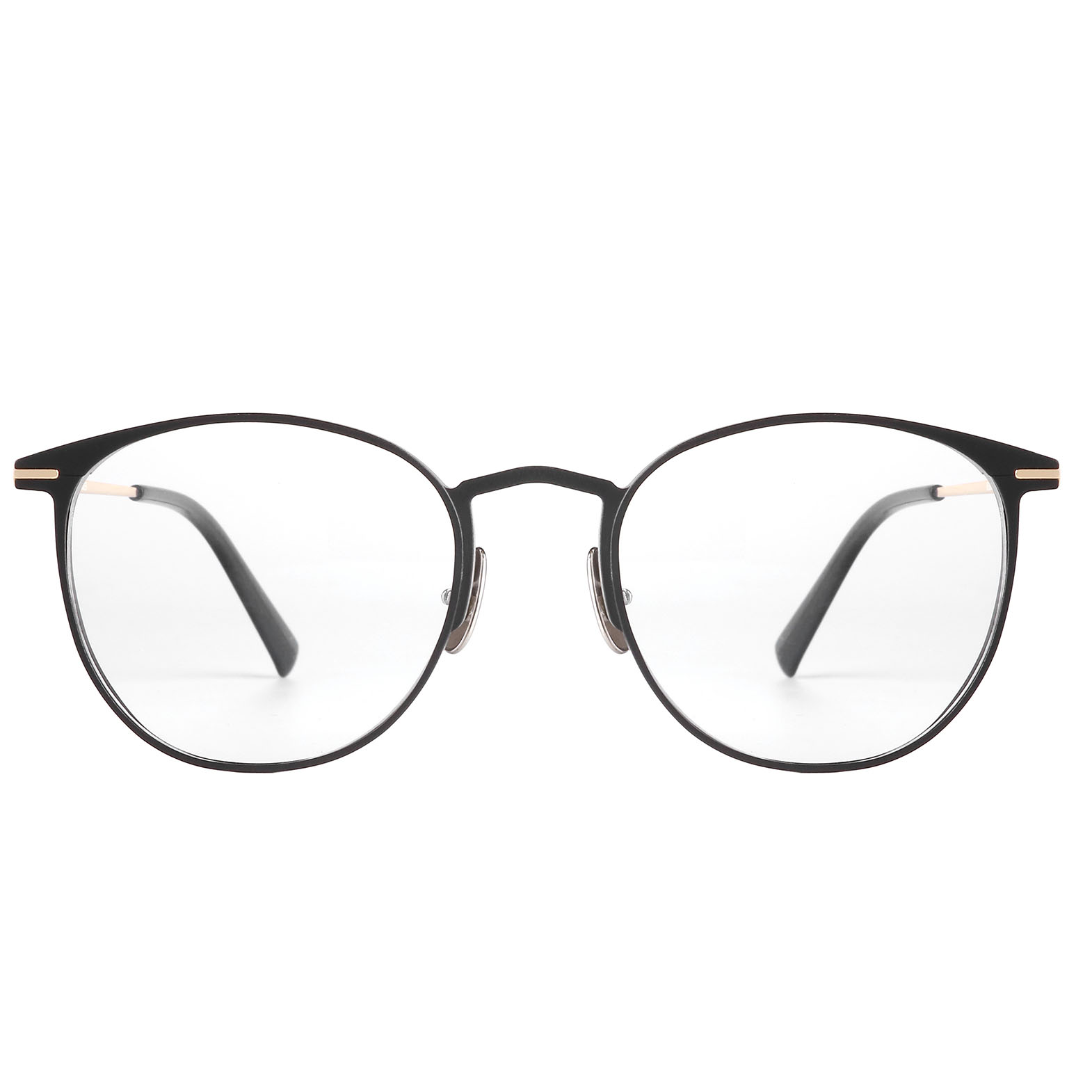 Double color plating process for the frames and temples, titanium nose pad arms.